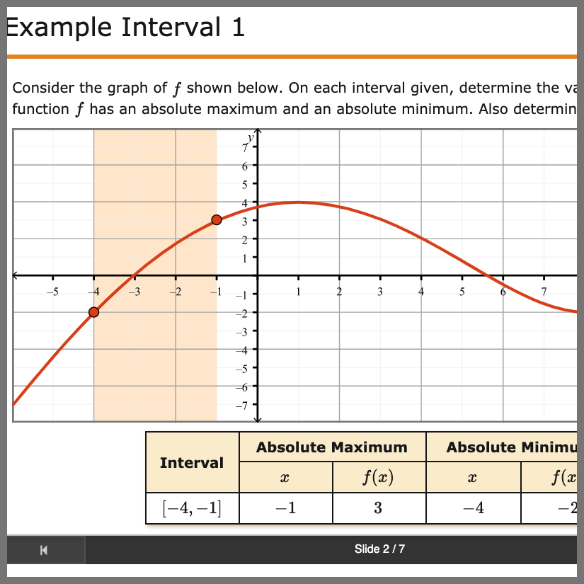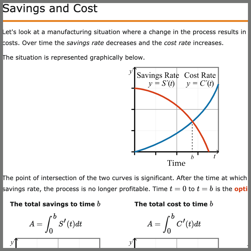 Lessons contain interactive elements like Interactive Narratives, HTML objects, Math Apps, or Geogebra applications to help solidify difficult STEM concepts.