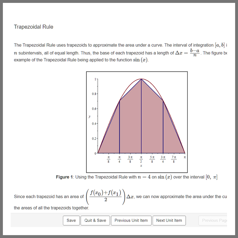The Introduction to Calculus Content Pack is a Möbius course developed by the team of content experts at DigitalEd that you can use as a customizable starting point to a complete calculus course in Möbius. This Content Pack explores: limits, derivatives, applications of derivatives, integrals, and application of integrals. This customizable resource contains 5 units of sectioned lessons and assignments enhanced with Möbius capabilities including text-based course material, images, plots and graphs, Interactive Narratives, Math Apps, both inline and algorithmic questions, and pre-built assessments.