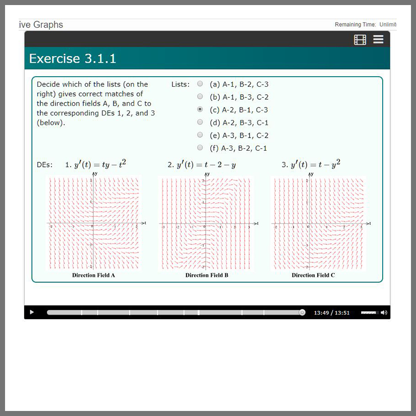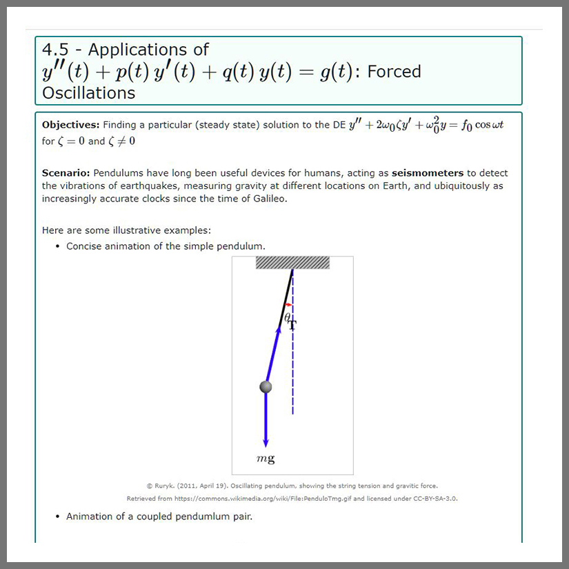 The Introduction to Differential Equations Content Pack is a Möbius course developed by the University of Waterloo that you can use as a customizable starting point to a complete differential equations course in Möbius. This Content Pack covers standard approaches to solving first order ordinary differential equations along with associated qualitative analyses, second order linear differential equations, and systems of differential equations. This customizable resource contains 7 units of sectioned lessons and assignments enhanced with Möbius capabilities including in-lesson questions, interactive narratives, Math Apps, immediate feedback, and end-of-section assignments.