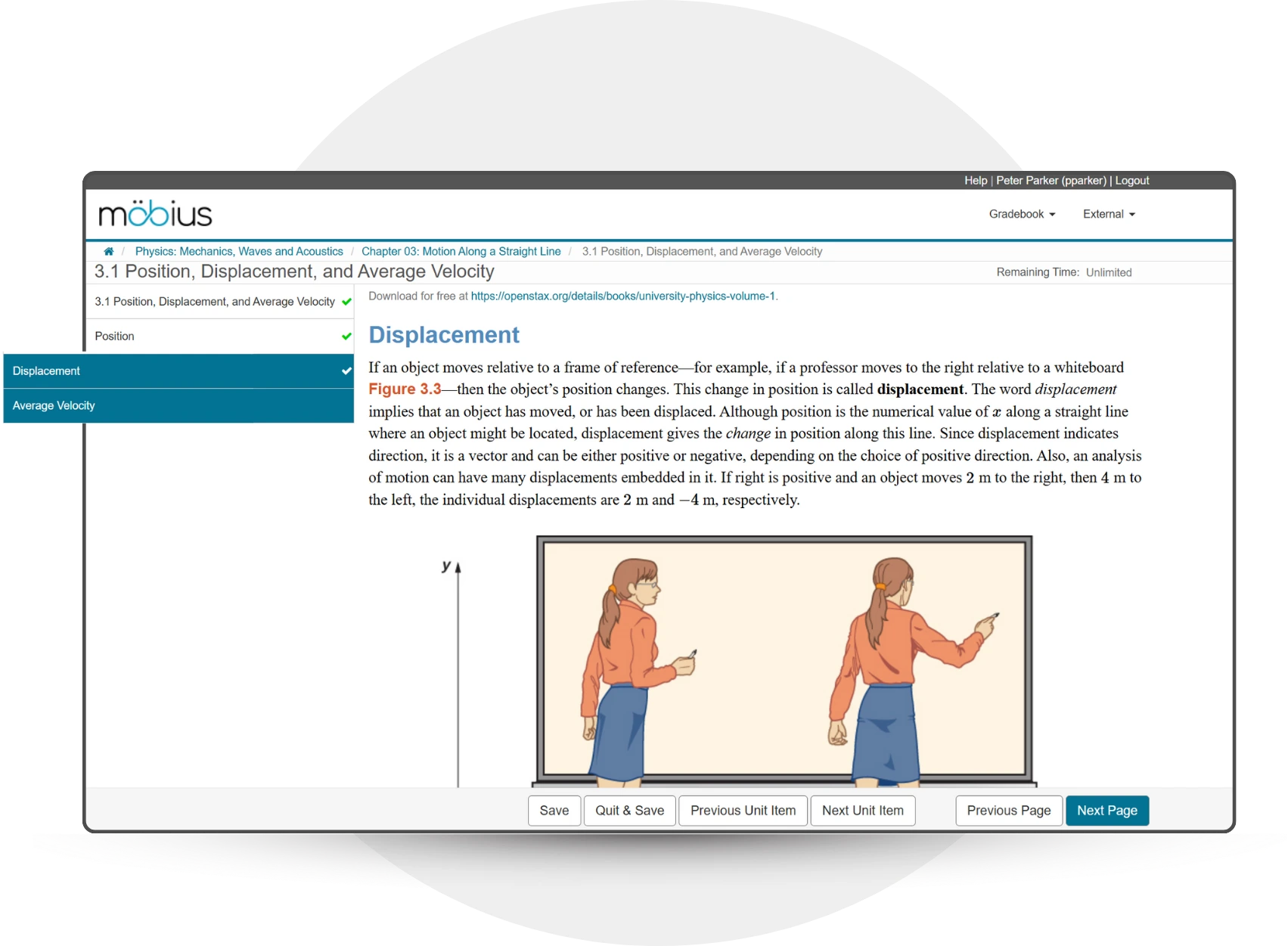 Möbius empowers instructors to create dynamic lessons and assignments that go beyond static equations, helping students actively explore and test their understanding of core concepts. With robust math engine support, unlimited practice with tailored feedback, and seamless delivery online or in hybrid modalities, the result is a more engaging and effective way to teach and learn Physics.