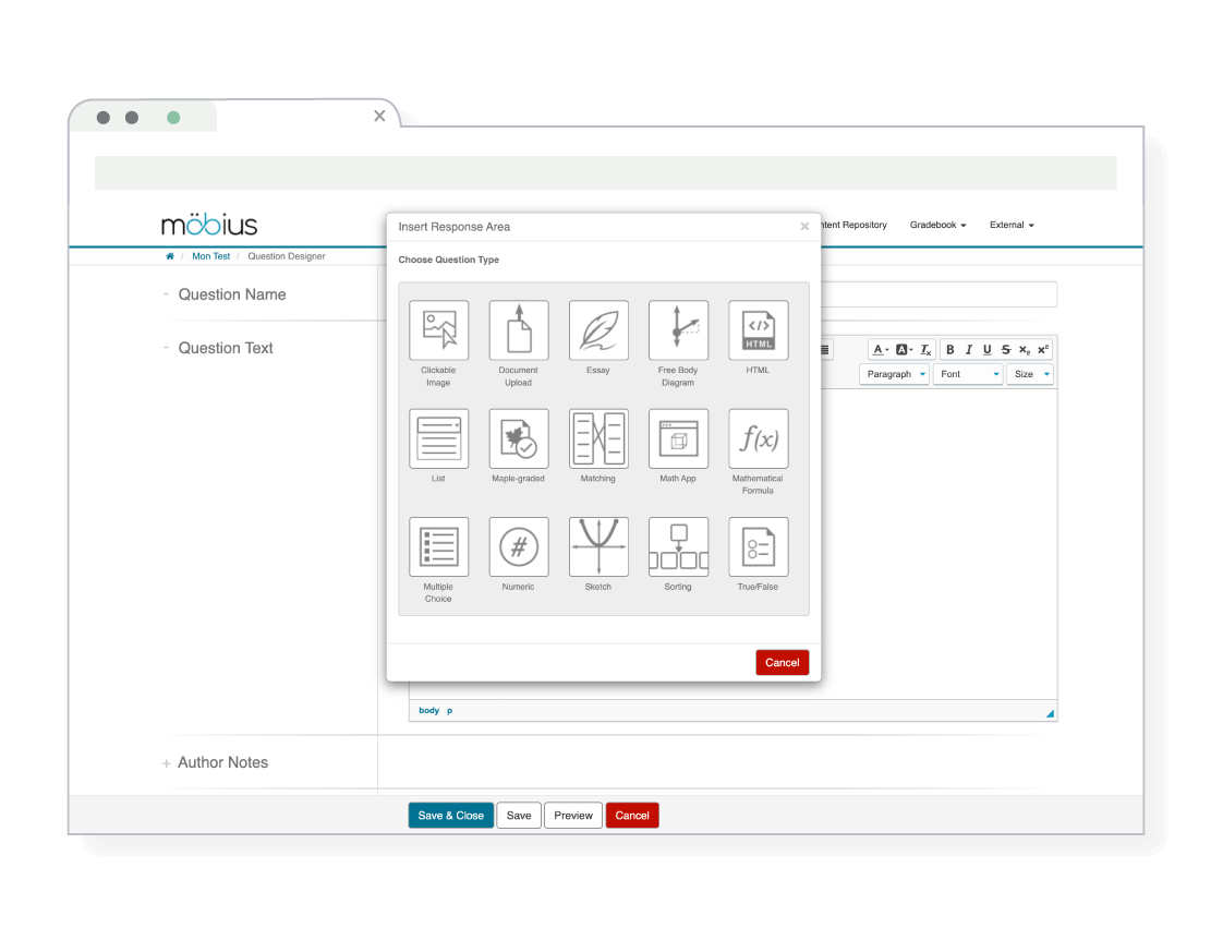 The Möbius Question Banks are Course Modules containing thousands of pre-built questions from DigitalEd and partnered schools.