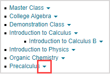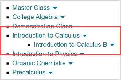 NOTE: The Tree View indicates parent class and child class relationships through branching. Example — Introduction to Calculus B is a child class of the parent class Introduction to Calculus.