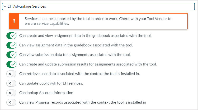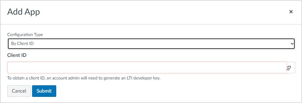 IMPORTANT: Unlike previous LTI versions, an LTI 1.3 tool must be added to Canvas™ by an administrator, followed by being added to an account or course. Additionally, users who want to add an LTI Advantage tool to a course must have the LTI - add / edit / delete permission in Canvas™.