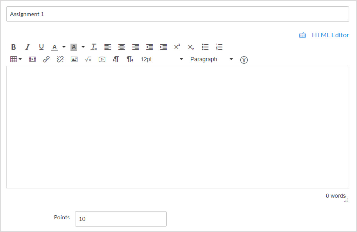 1. Fill in the Name, Points, and any other details required for the assignment.