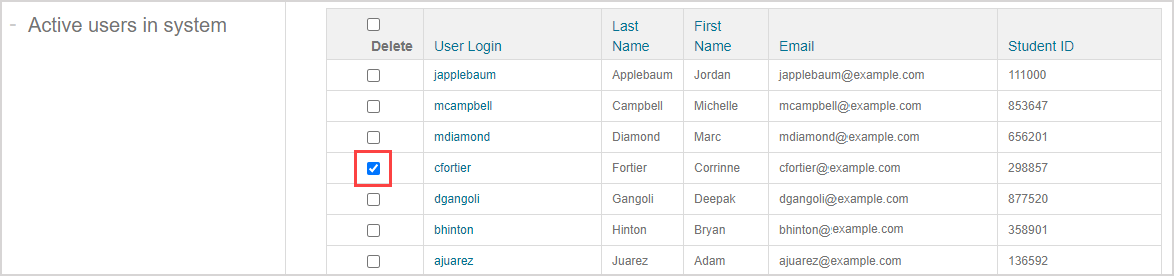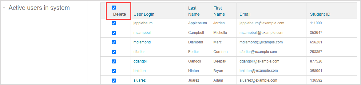 TIP: Select the Delete column heading check box to select all users in your search results.