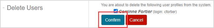 NOTE: Users can only be deleted from the search results of a system user search (not a class user search).