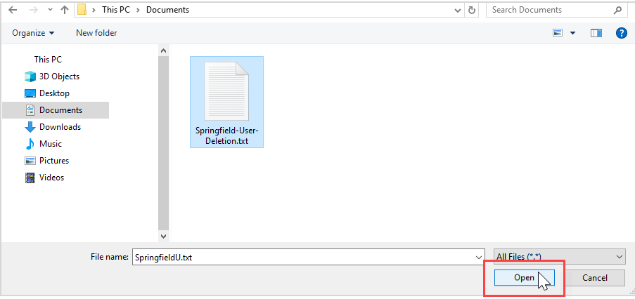Navigate to where your user roster file is stored on your computer. Select the file and click Open.