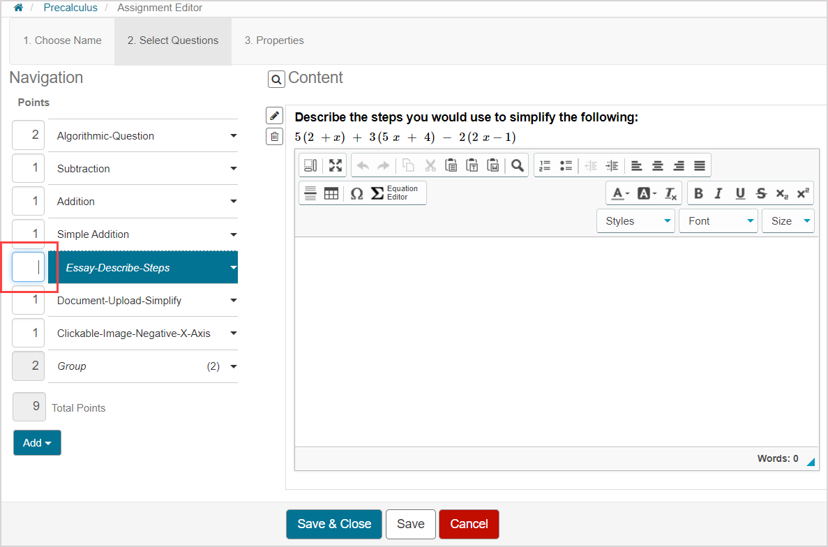 TIP: Check out the Define the point value of a question group section in the Create a question group for an assignment topic to learn how to edit the Points field for a question group.