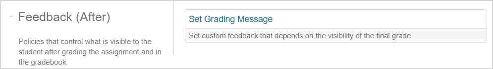 - The only Feedback (After) messaging property that can be defined is Set Grading Message.