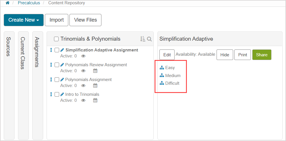 Editing questions within an adaptive assignment is very similar to the process for editing questions within a non-adaptive assignment.