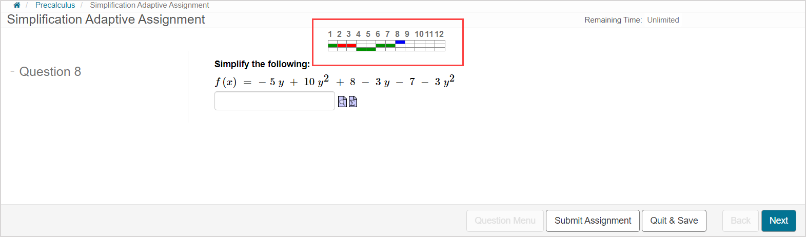 IMPORTANT: Partial grading isn't permitted on adaptive assignments.