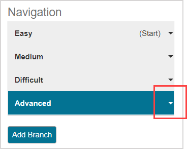 TIP: How you've ordered your branches in the Navigation pane matters when the basic grade policy is applied since it assumes that your branches are organized in ascending order of difficulty (Example — Easy, Medium, and Difficult). Click-and-drag branches to re-arrange them within the Navigation pane. Check out Work with adaptive assignment policies for more details.
