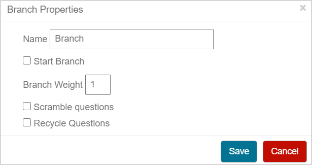 | Scramble Questions | Select the check box to have the questions from this branch displayed to the student in a random order compared to the order that they are listed within the branch. |