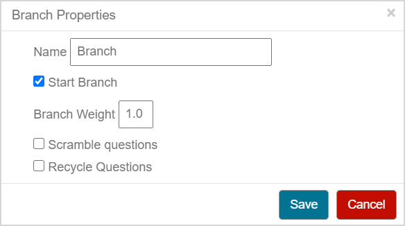 | Branch Weight | Define a value to indicate how much each question within the branch is worth. 1.0 is the default value. |