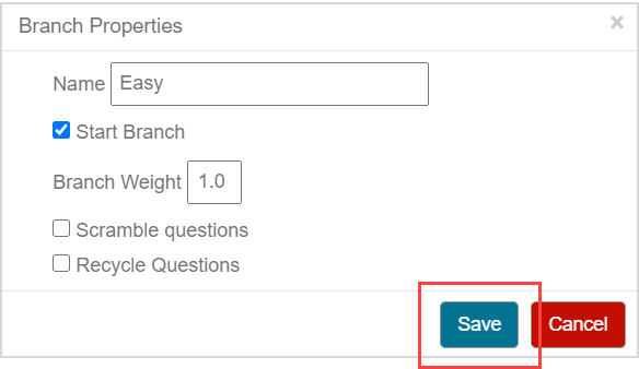 | Name | Define a name for the branch to identify what grouping of questions it will contain (Example — Easy). |