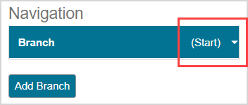 | Start Branch | Select the check box for the selected branch to be the launch point of the adaptive assignment. The first question that the student is presented with is retrieved from the branch identified as the Start Branch. If selected, the branch will be identified with the (Start) label. |