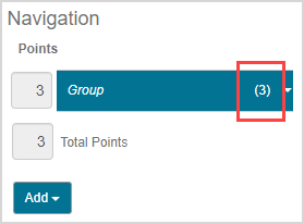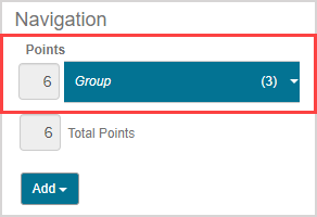 The defined point value per question of the question group is summed for all of the questions within the question group and displayed in the Points field of the Assignment Editor. Example — A question group of three questions with a point value of 2 for each question leads to the question group totaling 6 points.