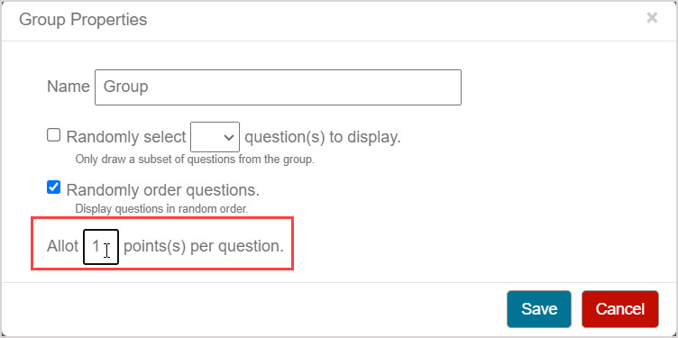 Click on the Allot n point(s) per question field and define the numerical point value for each question within the question group.