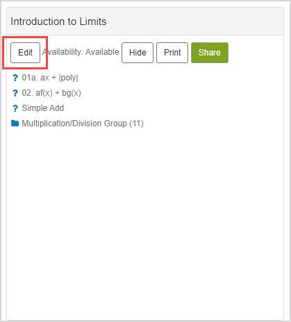 NOTE: If there are active attempts by students at the current assignment, you will not have access to any icons in the Assignment Editor.