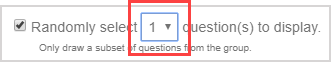 1. (Optional) If the Randomly select n question(s) to display check box is selected, use the drop-down list to select the number of questions from your question group that you want to be displayed to a student during their lesson attempt.