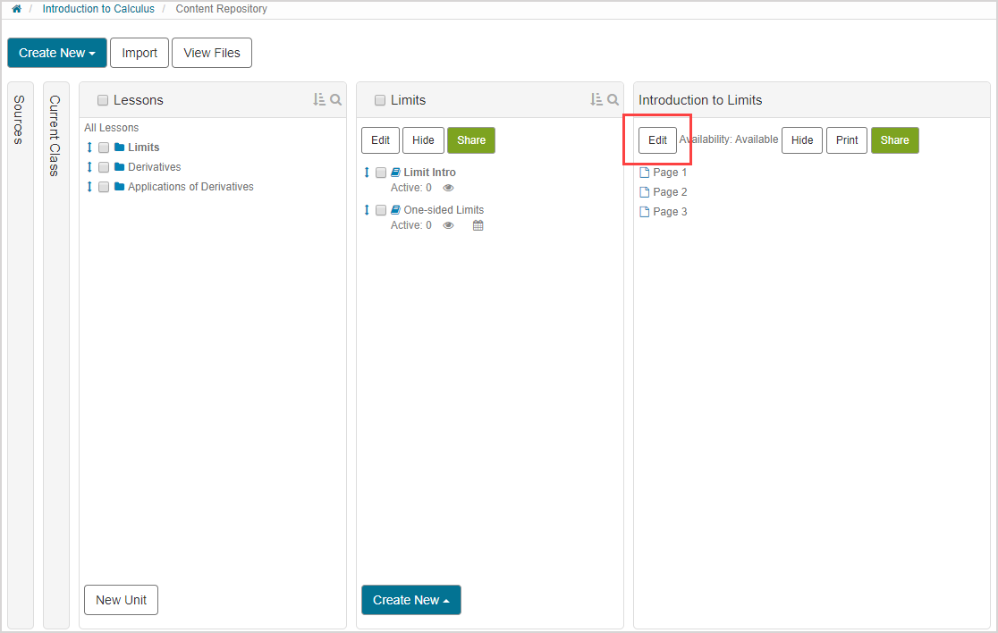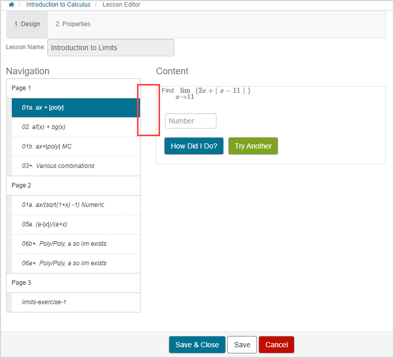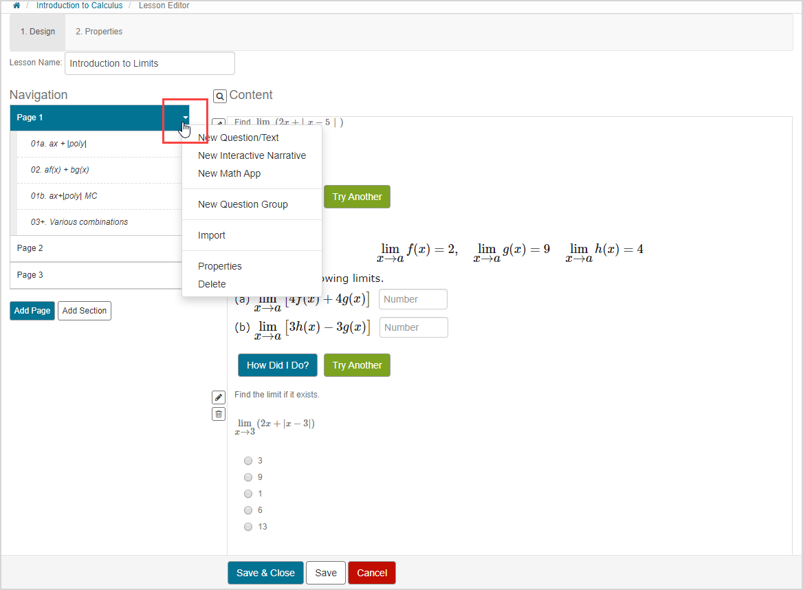 You can now edit individual content blocks, pages, and sections within the lesson:
