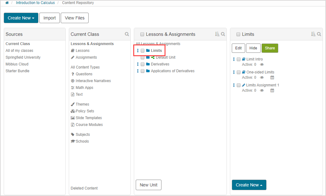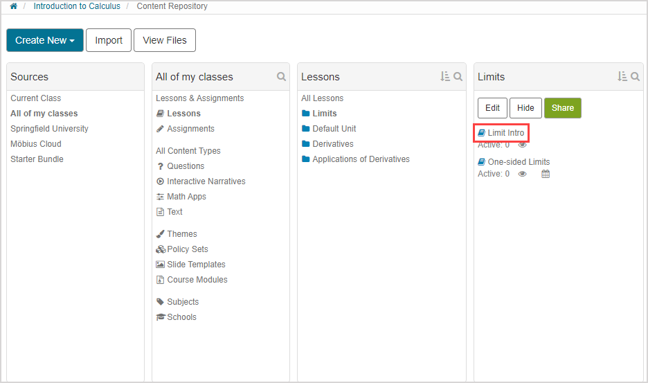 Click Content Repository on the Class Homepage.
