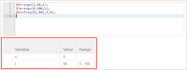 NOTE: Variables must first be defined for an algorithmic question to display randomly-generated values based on the commands.