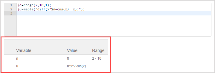 1. The algorithmic command is translated to algorithmic syntax including Maple code and is visible in the Algorithmic Editor.