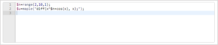 1. (C) Enter the Maple commands used to define the random variable or enter the Maple plot statement. Examplediff(x^$n+cos(x), x);