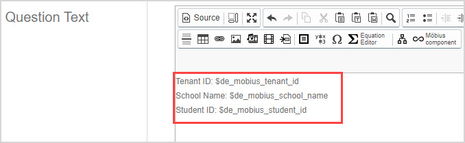 • $de_mobius_student_last_name — Returns the Last Name corresponding to the user currently viewing the question.