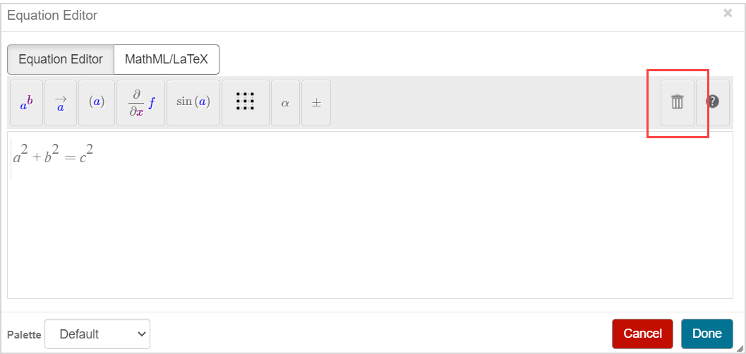 TIP: Clear your Equation Editor entry field by clicking the delete icon
