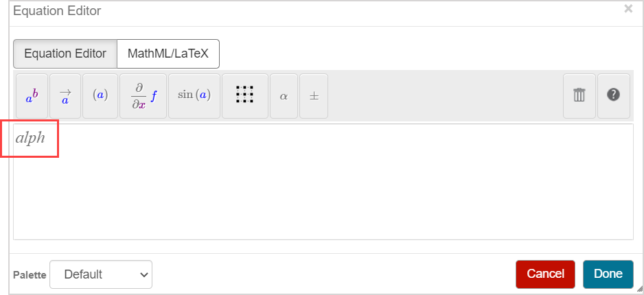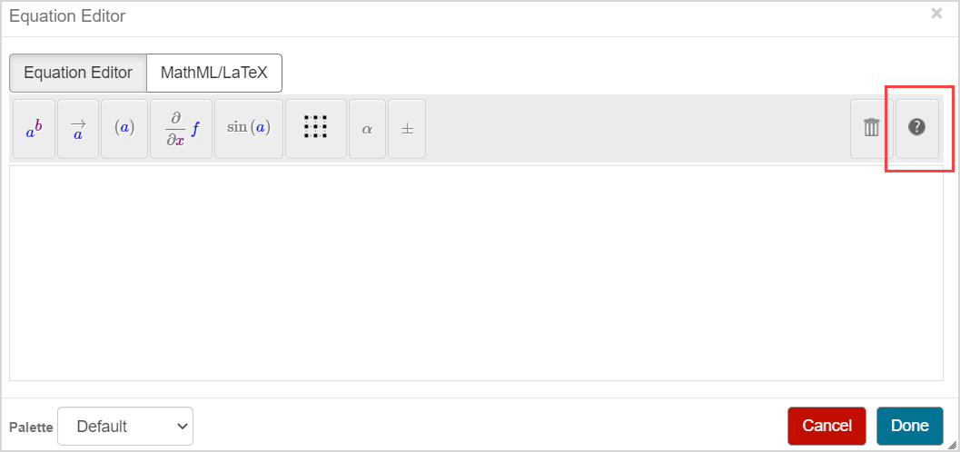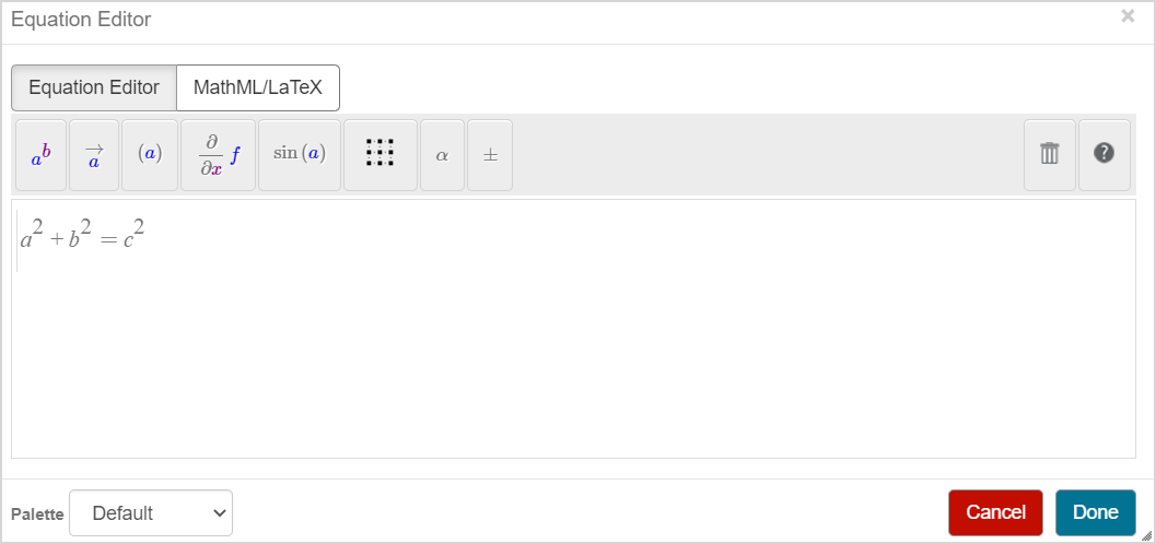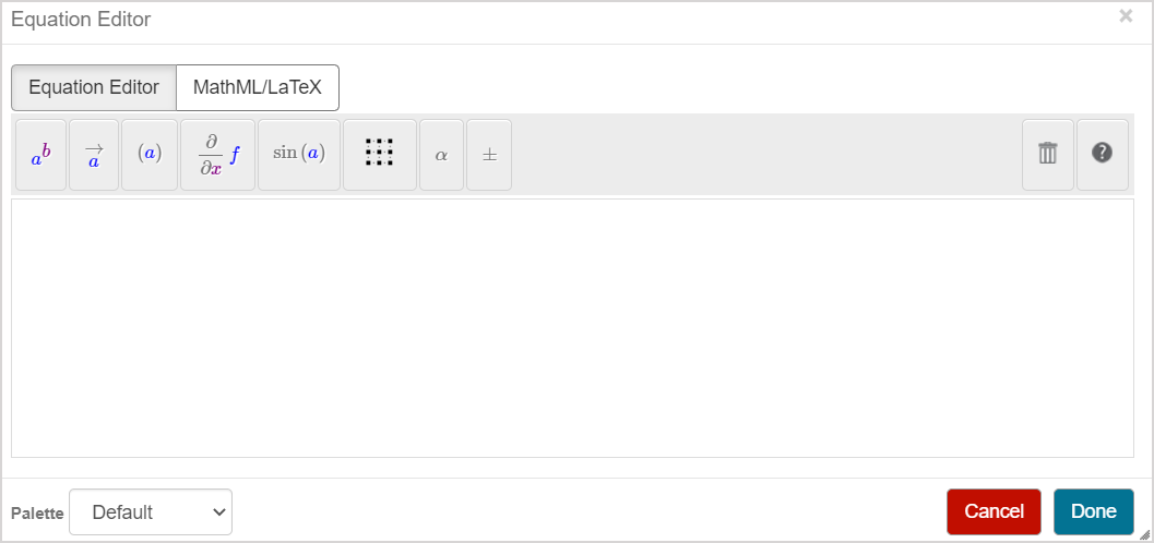 A simplified Equation Editor is also available to your students while they're attempting the following question types: