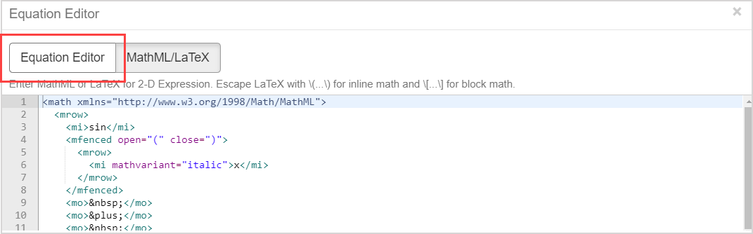 NOTE: The MathML and LaTeX options are only available to you as an instructor or author; not your students.
