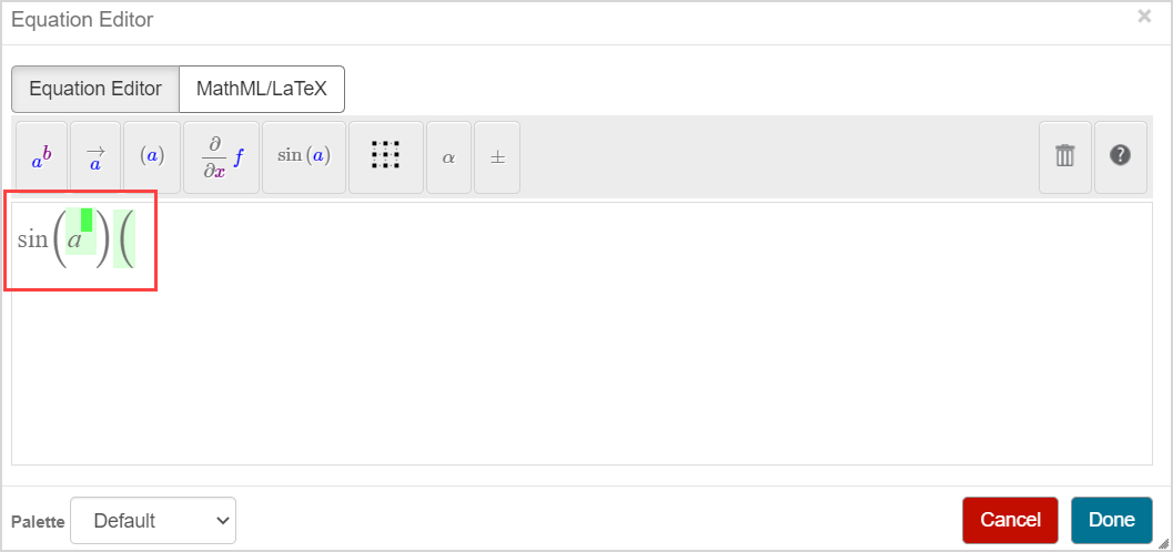 Click Done to insert your formatted symbolic expression into the item being authored.