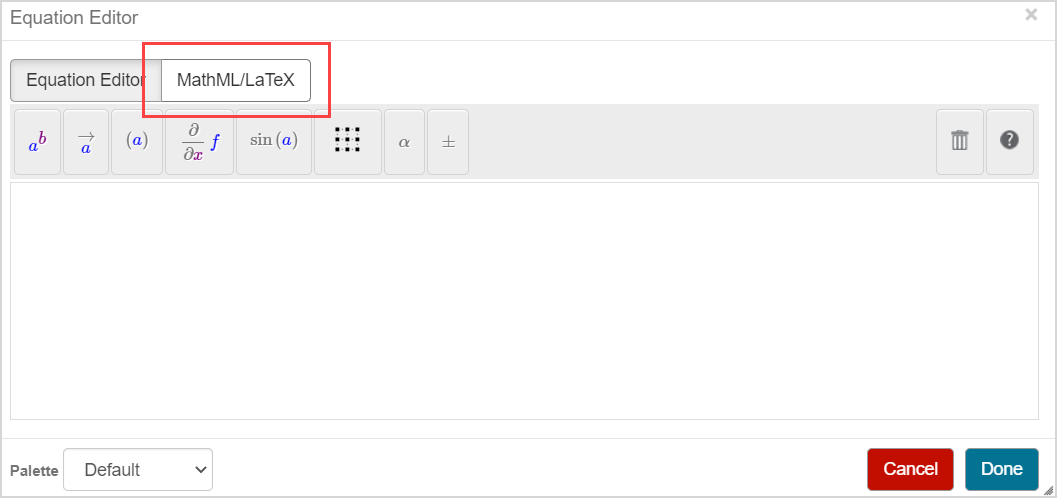 TIP: Check out Work with LaTeX for more details on using LaTeX during question authoring.