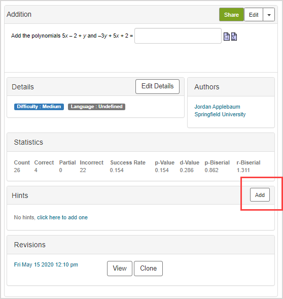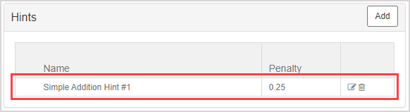 NOTE: The hint’s name will be visible to the student if they choose to view the hint during their attempt.