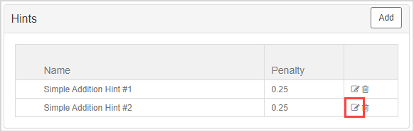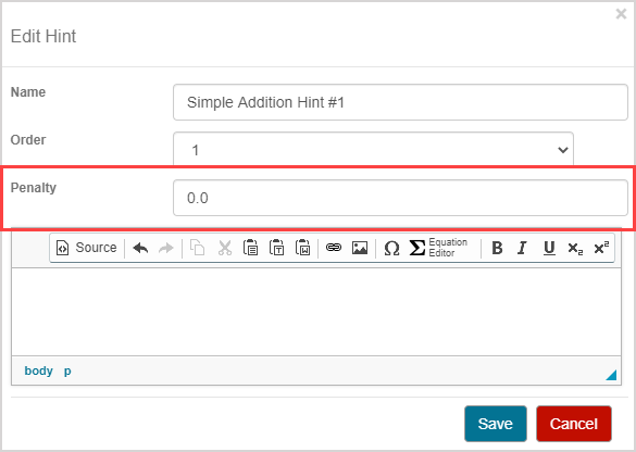 (Optional) Assign a grade penalty value in the Penalty field that's subtracted from the student's grade if they choose to use the hint.
