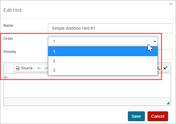 NOTE: The numerical values available in the Order drop-down list relate to the number of available hints for the question.