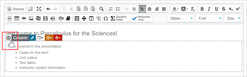 TIP: Alternatively, you can select an element by highlighting the entire element (Example — an entire table) or a portion of the element (Example — a single word or a sentence within a table).