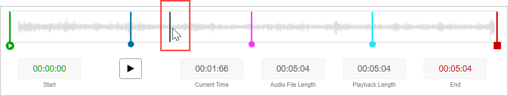 - Play Audio — New transition markers are inserted in sequence to the right of the waveform bar selector.