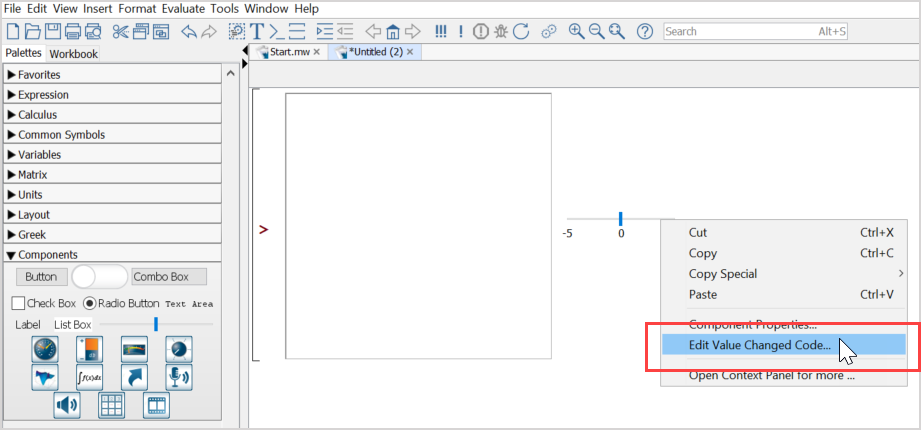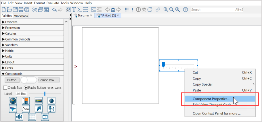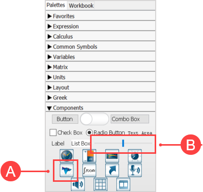 Click the (A) Plot Component and (B) Slider Component from the Components palette to add them to your document.