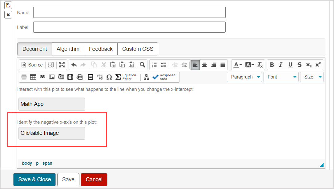 Click Save & Close to return to the Assignment Editor to continue working on the rest of your assignment.