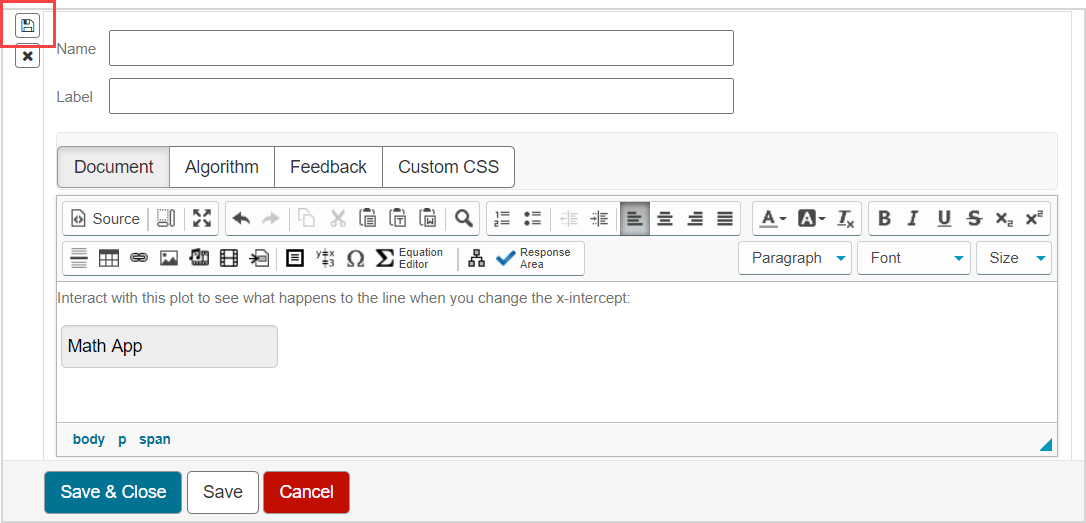 (Optional) Continue editing your ungraded Math App as you would for any other piece of content (Example — add custom CSS).