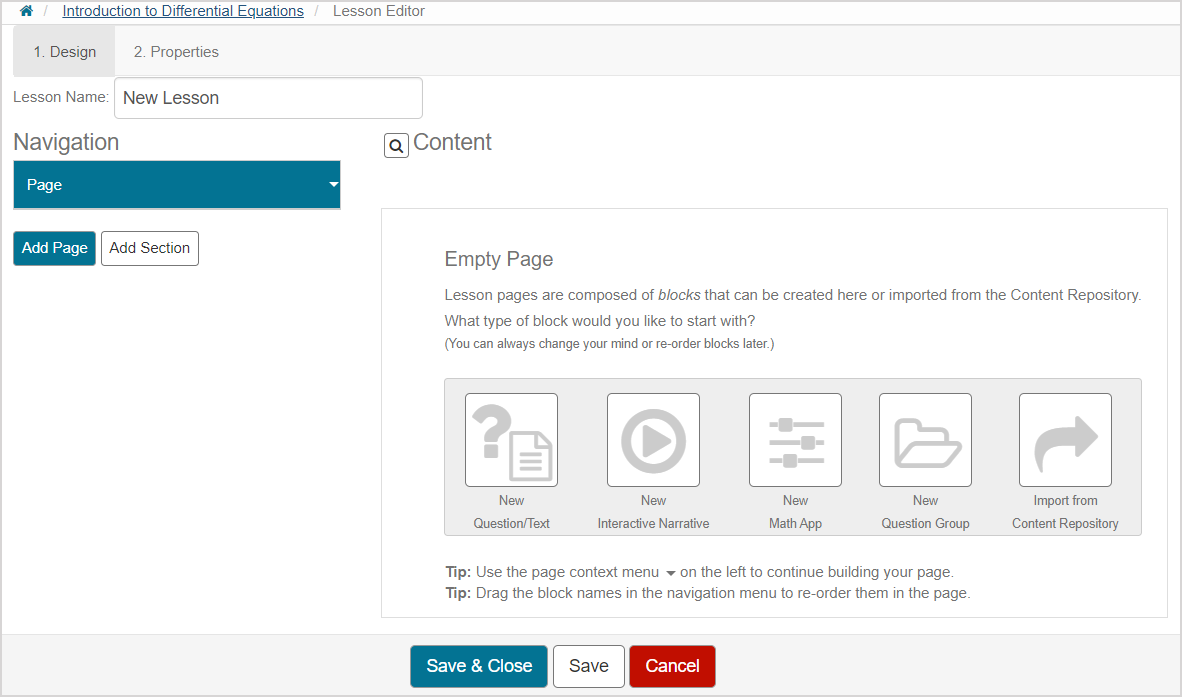 Click Save & Close to return to the Lesson Editor to continue working on the rest of your lesson.