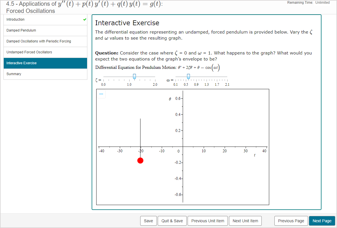 An ungraded Math App presents an embedded MapleTM worksheet that the student can explore without the final state of the Math App being submitted for grading.