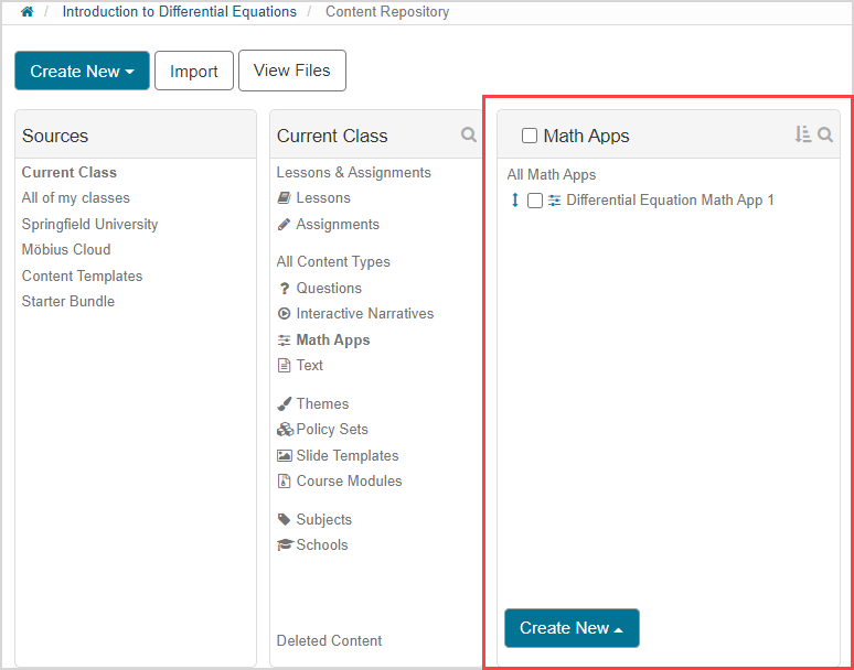 TIP: You can also import an existing Math App from your Content Repository: