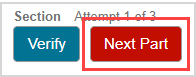 The student is presented with the adaptive question within their activity. The first section is displayed. The student will see the Verify button and the number of allowed attempts at the section to indicate that this is a section of an adaptive question.