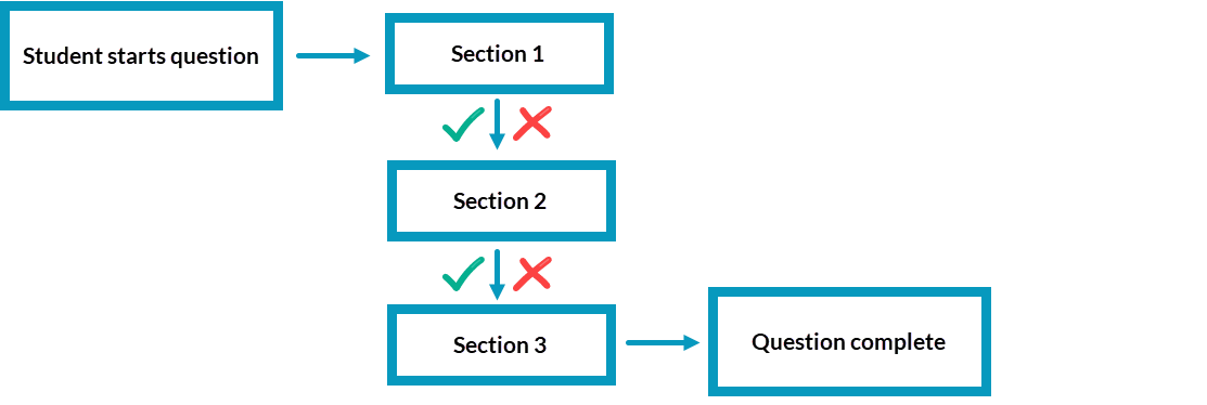 - Whether the student gets the section correct or incorrect, the student is navigated to the next section of the question.