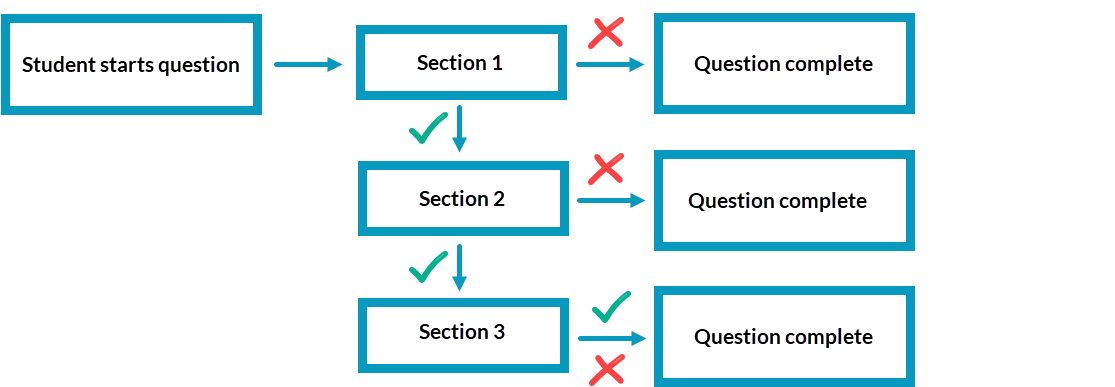 - If the student correctly answers the initial question being asked at Section 1, their attempt is ended and the questions is considered complete.