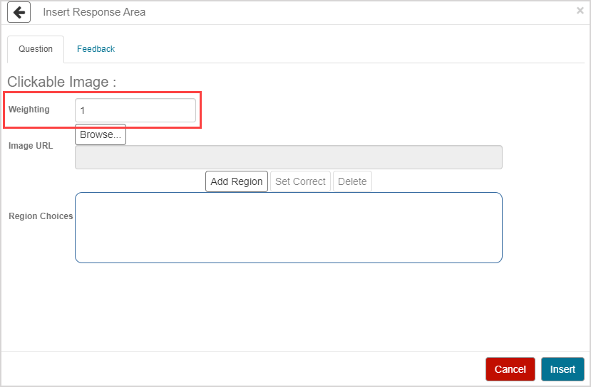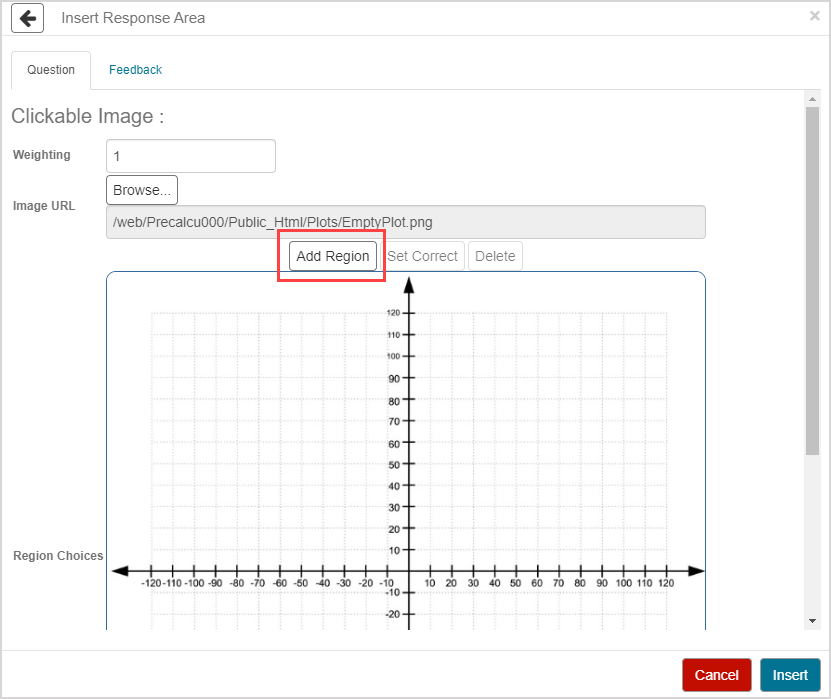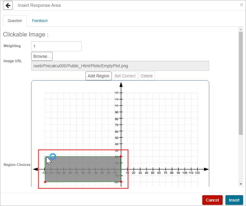 Click Insert to add this student response component to the question.